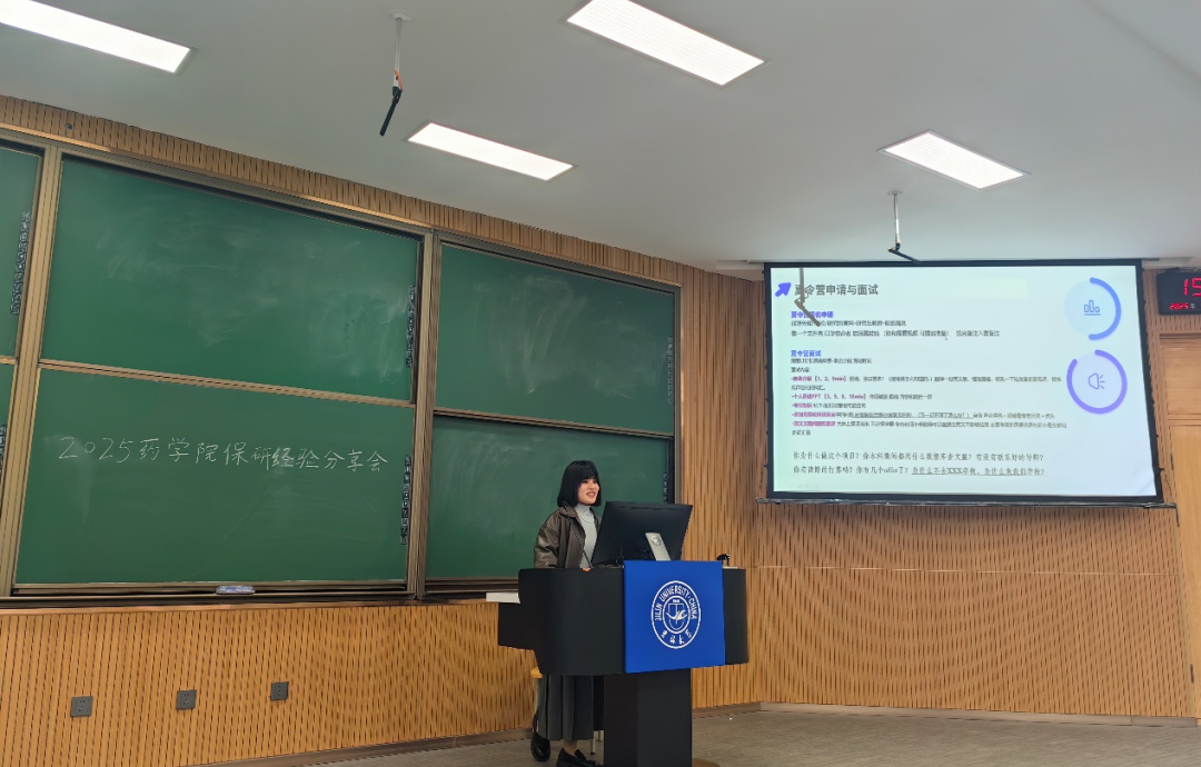 学生工作办公室积极开展学风建设项目“我‘药’对你说”,4月23日,2025年保研经验分享会在新民校区第二教学楼举行。分享会由学生工作管理委员会学业指导部梁嘉赟主持。