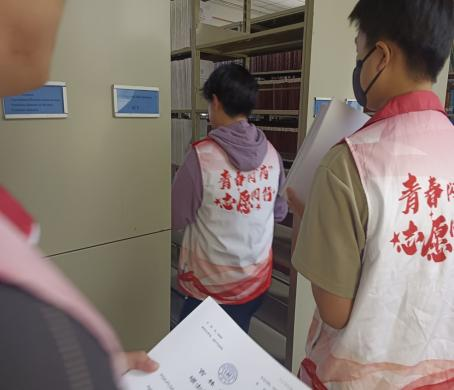 第二组志愿者在图书馆二楼进行书籍整理工作,按照老师指导的书籍编号顺序、摆放方式及注意事项,志愿者们井然有序地展开行动。在不打扰其他学生学习的情况下,志愿者们无声、迅速地分类归纳,按部就班完成所有工作。