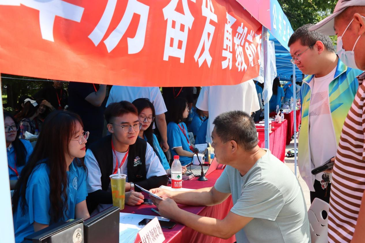 的相关信息,同孩子一起分享着开启大学新旅程的喜悦。同时,报到处的辅导员助理及工作人员也在耐心地解答家长们对学校、学院及专业的相关问题。经过昨天一天迎新工作的经验积累,志愿者开展迎新工作更加得心应手,东门迎接、新生报到、到达宿舍,新生入学的事宜在学长学姐的帮助与指引下都进展的颇为顺利。