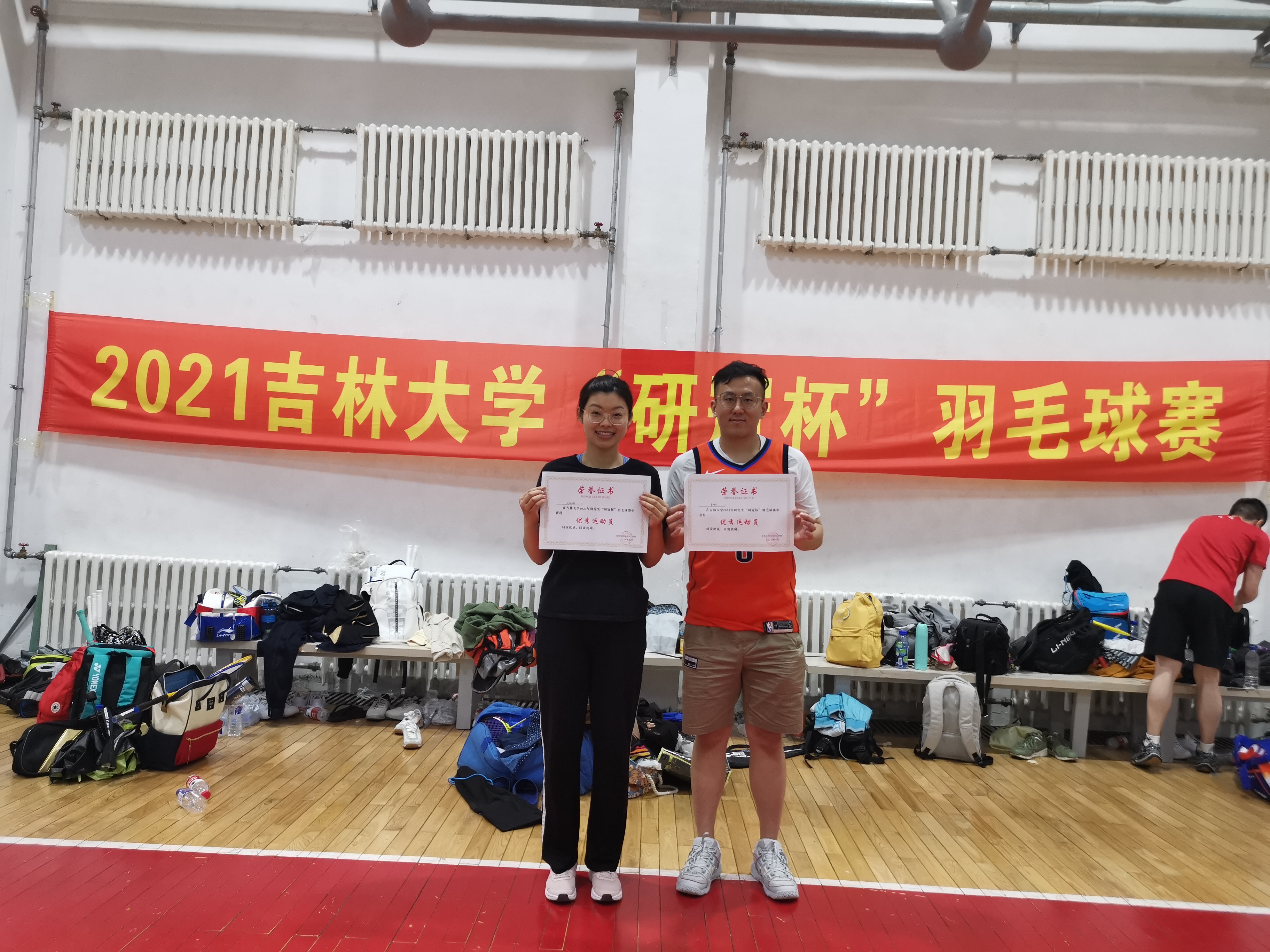 研究生参赛队伍在领队杨阳同学的带领下积极参加比赛并取得了优异成绩。其中,2018级黄鹏同学和2019级司函瑞同学在混合双打比赛中荣获“优秀运动员”称号!