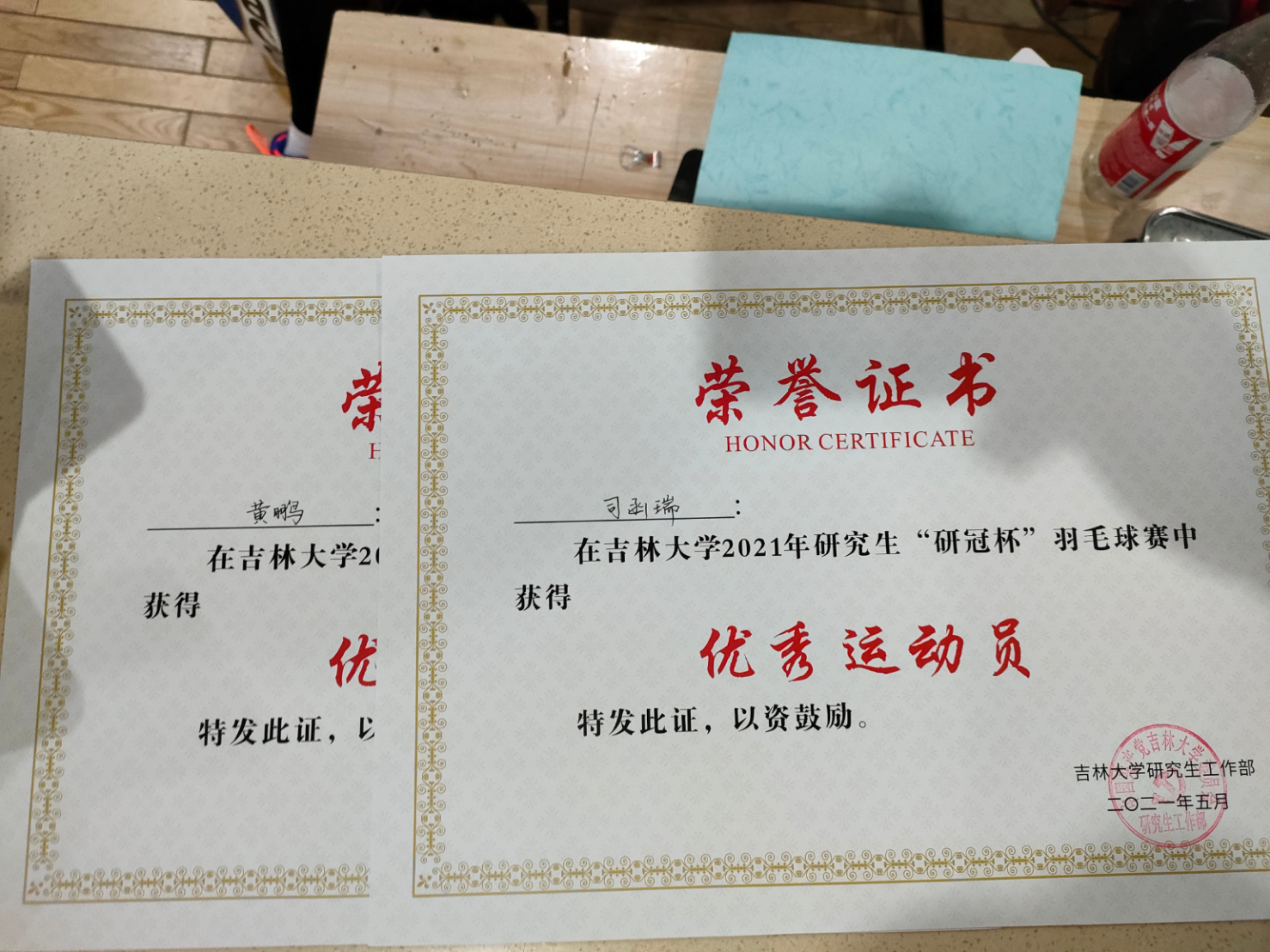 2021年研究生“研冠杯”羽毛球赛“优秀运动员”荣誉称号!为我院其他参赛选手鼓舞了士气,振奋了精神!男单选手方帅和刘俊彤同学,女单选手焦玉凤和陈小玲同学,混双选手史大臻、赖思含同学在赛场上尽情挥洒汗水,展示着令人炫目的技巧,把羽毛球的魅力完美地展现了出来!整个比赛中,大家欢声笑语,充满活力,展现了擦边短剧