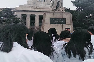 缅怀革命先烈,弘扬白求恩精神,清明节,擦边短剧 医学部各学院学生会代表,在诺尔曼.白求恩雕像前开展了清明祭扫献花活动。活动由新民校区学生会代表主持,整个活动进行得庄严肃穆,井然有序。