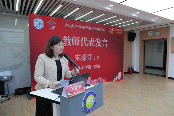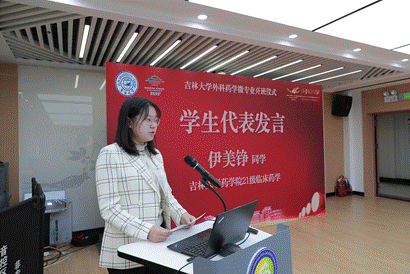 白求恩第一临床医学院 22 级临床医学 5+3 专业的刘洺菀同学分别代表临床药学和临床医学学生发言,从药学生和医学生的不同视角表达了对外科药学微专业学习的认识,期待通过外科药学丰富多样的课程,夯实自己的专业底蕴,实现医学梦想。