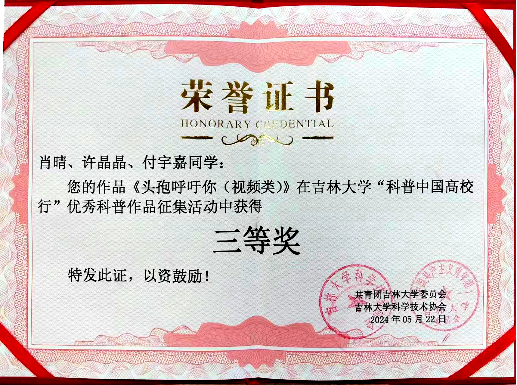 科学技术协会主办,旨在激发大学生的科普创作热情,培养科普人才。大赛共收到来自各学院的参赛作品518件,经过专家组的严格评审,最终评选出一等奖5名,二等奖15名,三等奖28名等奖项。