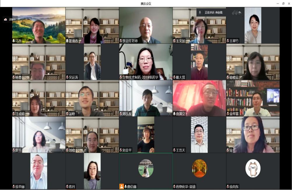 学院严格按照教育部推进高校课程思政建设的相关要求,督促在线教学授课教师切实落实课程思政建设。课前需有5分钟防疫精神宣讲,将疫情“危机”转化为思政教学“契机”。为了鼓励学生积极面对抗疫,安心学习,药物化学教研室采取多种形式进行宣传教育。徐国兴主任利用歌曲、魔术、二人转等视频进行抗疫必胜宣传;周小平老师在课前抗疫宣传中,采用更贴近学生自身的内容,并与学生互动,通过弹幕共同为擦边短剧