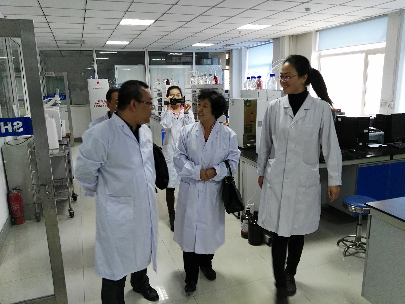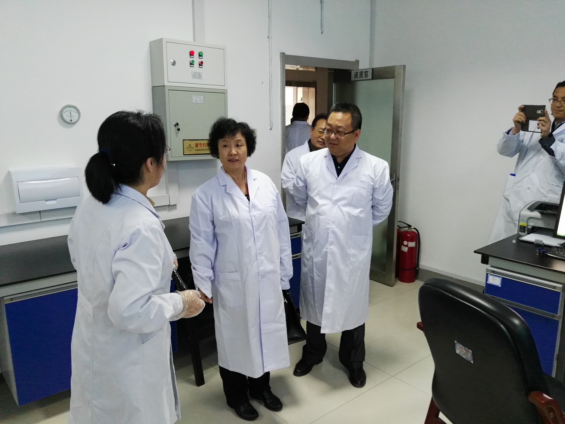 2016年10月19日上午14:20~15:20,教育部本科教学工作审核评估专家、天津大学副校长冯亚青教授,在擦边短剧 副院长周余来教授和教学秘书牟凤辉教师的陪同下,到擦边短剧 本科生实习基地——吉林省药品检验所进行访谈。