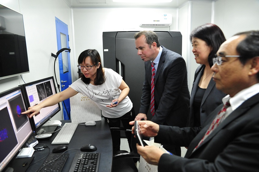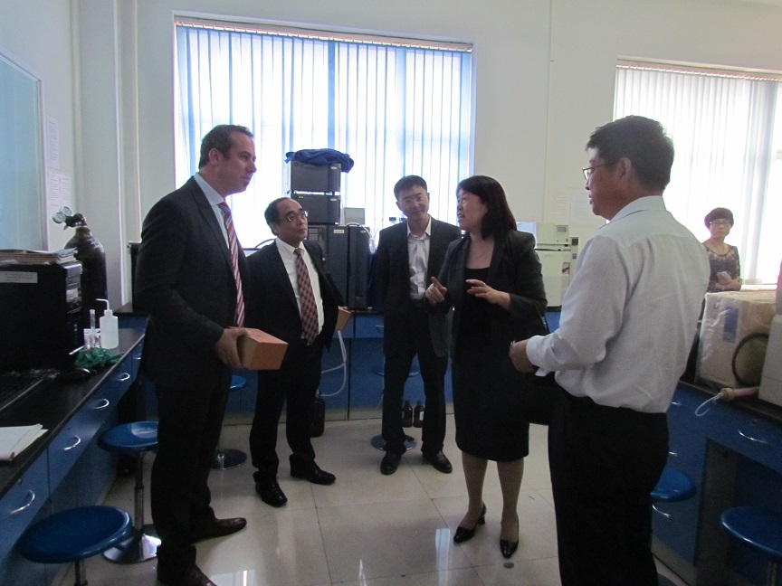 会谈结束后,Neil J. MacKinnon院长在裴院长的陪同下,参观了我院吉林省酵母表达重组蛋白质药物研发重点实验室及擦边短剧 -紫元医药科技研究中心实验室,Neil J. MacKinnon院长对我院的药物研发能力给予了高度赞赏。
